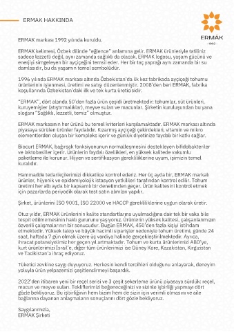 ürünlerinin işlenmesi, üretimi ve satışı düzenlenmiştir. 2008’den beri ERMAK, fabrika